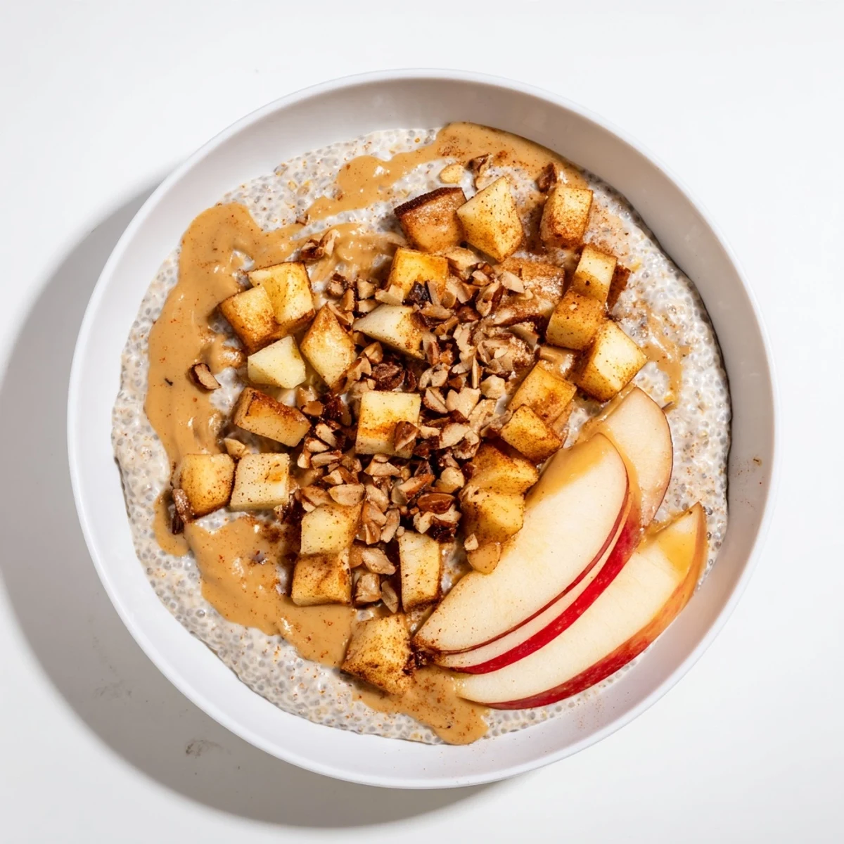 Pin It A creamy, wholesome pudding layered with fresh apple and rich peanut butter—perfect for breakfast or a healthy snack.