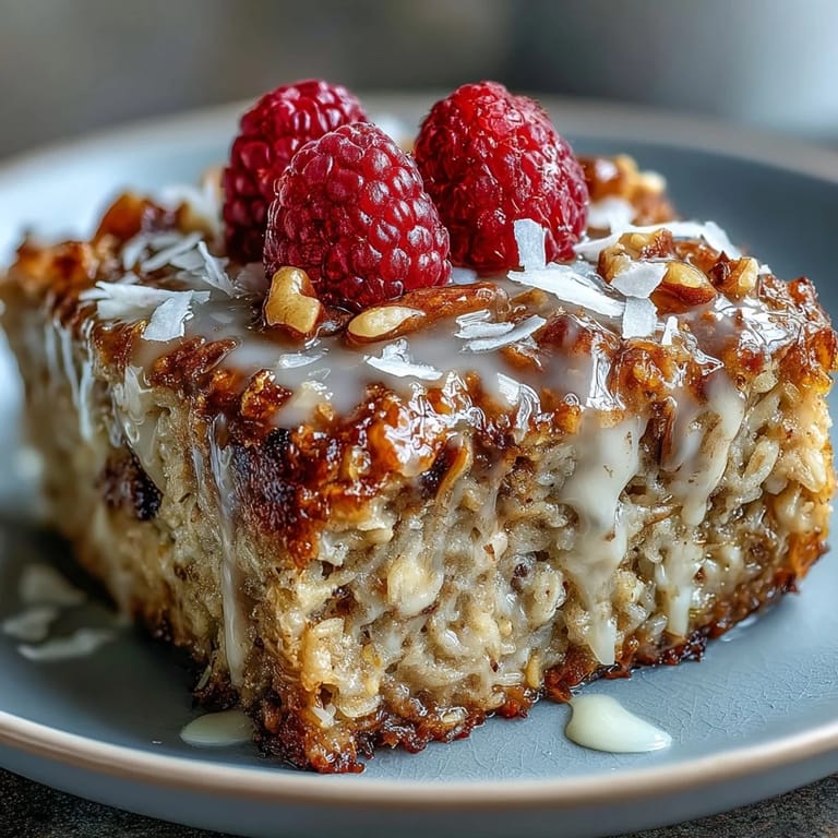 Pin It There was a Sunday last spring when I woke up with the oven already warm and the kitchen smelling faintly of vanilla. My housemate had started this baked oatmeal without a recipe, just instinct and whatever was left in the pantry. By the time I shuffled downstairs, the raspberries had burst into jammy pockets and the coconut on top had gone golden. We ate it straight from the pan with mismatched spoons, and I've been making it ever since.