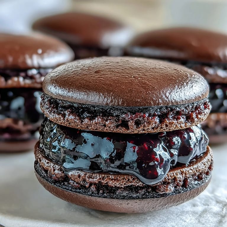 Pin It My first attempt at macarons was a disaster—I piped them confidently, watched them spread like pancakes in the oven, and learned the hard way that French pastry doesn't forgive impatience. But something about that failure made me determined to master them, and when I finally cracked the technique, the reward was these impossibly delicate shells filled with a tangy blackcurrant ganache that tastes like luxury. There's something almost meditative about making macarons once you stop fighting the process and start trusting it.