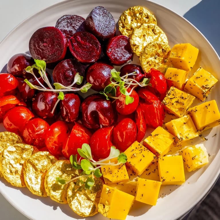Pin It I'll never forget the evening I discovered that a cheese board could be more than just a collection of snacks—it could be a work of art. I was hosting my first proper dinner party, and while I fretted over the main course, my neighbor casually mentioned how she'd once arranged a platter in bold color blocks instead of the usual scattered approach. Something clicked. I spent the next hour hunting down deep crimsons and brilliant golds from my pantry, and when guests arrived, the first thing they did wasn't head to the table—they gathered around that platter. That's when I realized: food that's beautiful enough to admire before eating tastes even better.