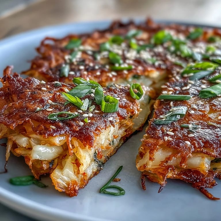 Pin It The first time I attempted crispy kimchi pancakes, the sizzle as batter hit hot oil immediately filled my small kitchen with a garlicky, tangy steam that made my stomach rumble. My neighbor popped her head in, drawn by the unmistakable aroma, and asked if I was frying something special. These pancakes combine everything I love about snack food: golden crispiness hiding a bundle of savory vegetables and just the right amount of bite from the kimchi. Each batch comes out a little different, depending on my mood and what's left in the fridge. I've learned that pancakes like these never last long, especially when served piping hot with a quick dipping sauce on the side.