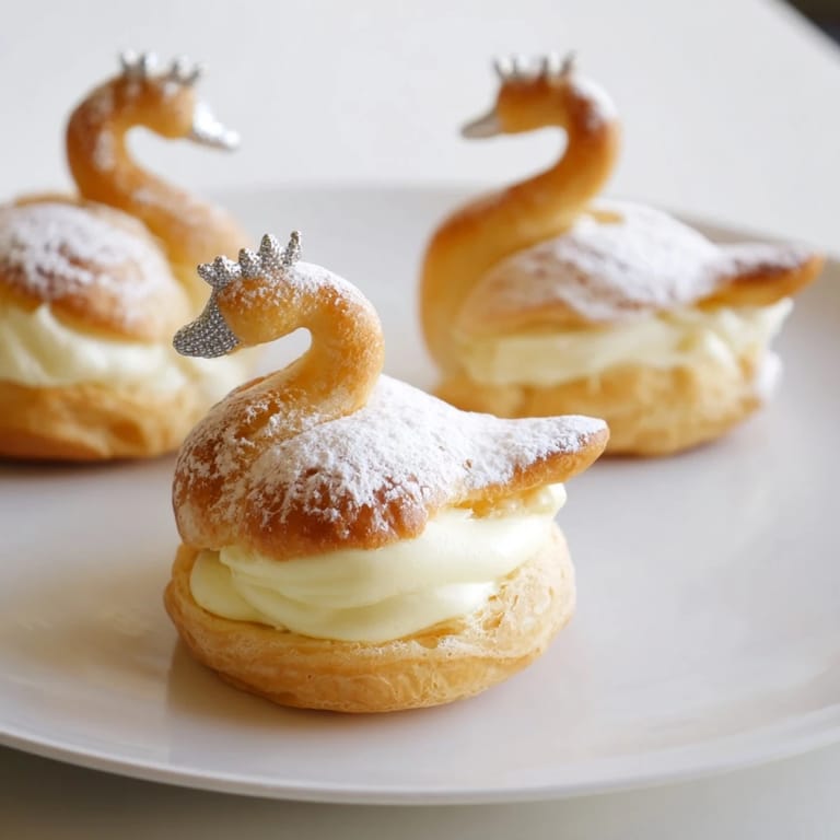 Serve these elegant swan pastries as a centerpiece dessert paired with a chilled glass of Moscato or Champagne to elevate your celebrations. They also make a charming addition to afternoon tea spreads or bridal showers.