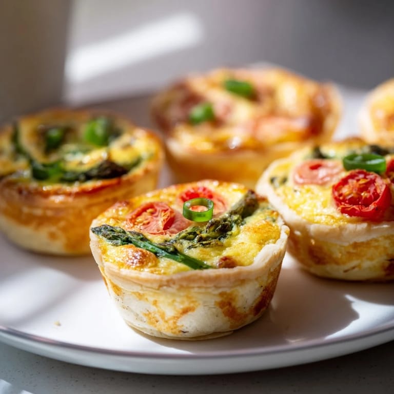 Pin It Delicate mini quiches arranged in a floral wreath, filled with spring vegetables and creamy cheese—perfect for brunches or festive gatherings.