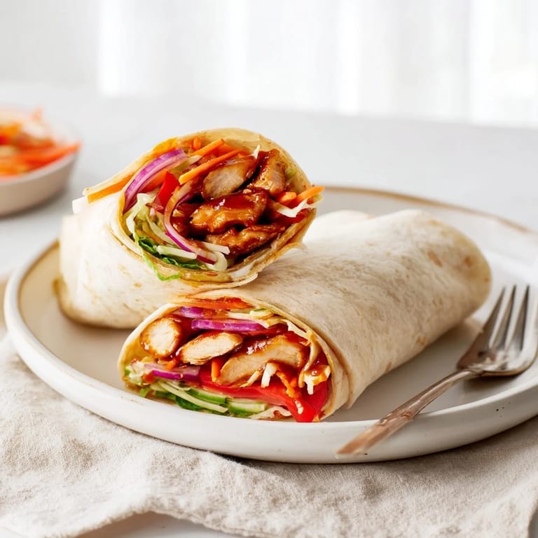 I've swapped the chicken for tofu pressed and cubed, and it soaks up the glaze just as well. Sometimes I add shredded cabbage or thinly sliced cucumber for extra crunch, and once I threw in some pickled jalapeños because I was feeling bold. If you want less heat, use only one tablespoon of sriracha and add an extra tablespoon of honey, and if you want more, drizzle extra sriracha right on top before rolling.
