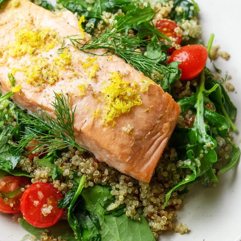 This salad is forgiving and welcomes whatever you have around. I've swapped in farro when I was out of quinoa, added sliced avocado when I wanted something creamier, and tossed in toasted pine nuts for crunch. If you grill the salmon instead of baking it, you get a little char that adds a smoky depth. Sometimes I double the herbs because I can never have too much freshness.