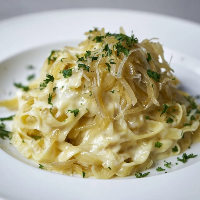 Pin It I remember one rainy Tuesday when my friend called right as I was starting this dish, and we talked for the entire cooking time. By the time they arrived, the apartment was full of that deep, caramelized onion smell, and we sat together with bowls of this warm, creamy pasta while rain hit the windows. It wasn't fancy or complicated, but it felt like the opposite of lonely.