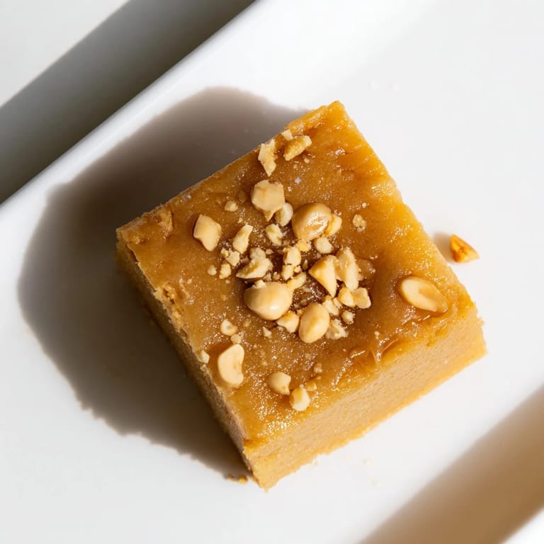 Pin It I pulled this cake out of the oven on a rainy Thursday, and the whole kitchen smelled like warm peanut butter and toasted sugar. My neighbor knocked on the door an hour later asking what I was baking. The texture caught me off guard at first—chewy like mochi, but soft enough to cut with a fork. It wasn't quite cake, wasn't quite custard, and that's exactly why I kept going back for another piece.