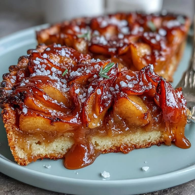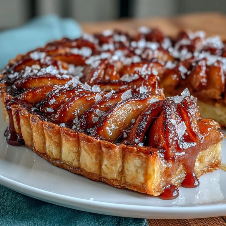 Pin It My neighbor once brought over a salted caramel apple tart on a crisp October afternoon, and I watched her slice into it with such casual confidence that I knew I had to learn how to make one myself. The way the buttery crust shattered under the knife, revealing those golden-spiced apples nestled in caramel, felt like discovering a secret. What struck me most wasn't just how it tasted, but how it made the whole kitchen smell like cinnamon and brown sugar for hours afterward. I've since made this tart more times than I can count, and it never fails to impress, whether I'm serving it at dinner parties or eating a quiet slice with coffee on Sunday mornings.
