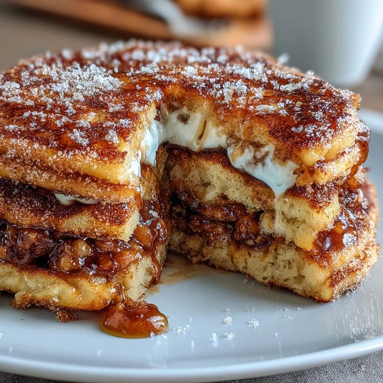 Pin It My neighbor Maria once mentioned, offhandedly while watering her garden, that she missed the churros from her childhood in Madrid. That comment stuck with me, and weeks later I found myself experimenting in the kitchen, trying to capture that crispy-outside, pillowy-inside magic in pancake form. The moment I dusted that first batch with cinnamon sugar and watched it melt into the warm surface, I knew I'd cracked something special. These pancakes aren't trying to be churros, exactly—they're something gentler, more forgiving for a weekday morning, but they carry that same caramel-and-spice spirit that makes you close your eyes while eating.
