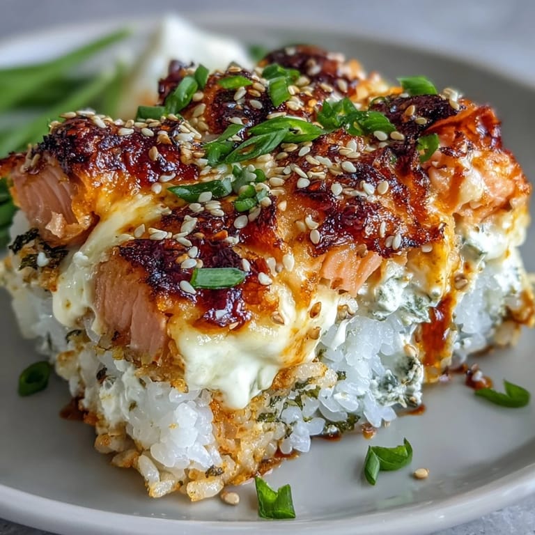 I made this for my friends during a game night, and we ended up eating straight from the pan with seaweed sheets like giant edible spoons. The mix of warm rice, cool avocado, and that hit of sriracha was exactly what we needed. Someone said it tasted like a California roll had a baby with a lasagna, and honestly, that is the perfect description. We polished off the entire pan before halftime. I have been making double batches ever since.