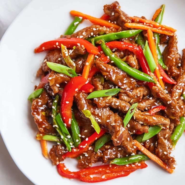Pin It My neighbor brought me snap peas from her garden one July afternoon, still cool and crisp in a paper bag. I had pork tenderloin thawing and no solid plan for dinner. That's when I threw together this stir-fry, standing at the stove with the windows open and the sound of kids playing basketball down the street. The sauce turned glossy and perfect on the first try, clinging to everything like it had been doing this forever. We ate it straight from the pan, barefoot in the kitchen, and I've been making it ever since.