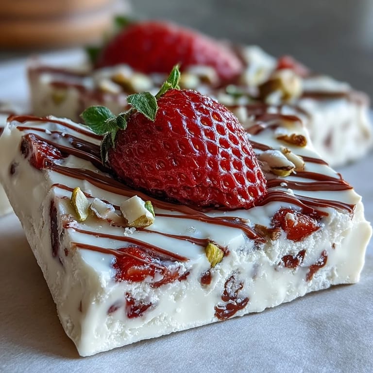 Pin It Valentine's Day calls for something sweet, simple, and stunning—and this Valentine Strawberry Yogurt Bark with Pistachios delivers on all three. Imagine a creamy canvas of smooth Greek yogurt sweetened with a hint of honey, topped with vibrant red strawberries and emerald-green pistachios that pop against the white base. This no-bake frozen treat is as beautiful as it is delicious, making it the perfect dessert to share with someone special or to enjoy as a guilt-free indulgence. With just 10 minutes of prep and a few wholesome ingredients, you'll have a refreshing, festive dessert that looks like it came from a gourmet bakery but requires zero baking skills.